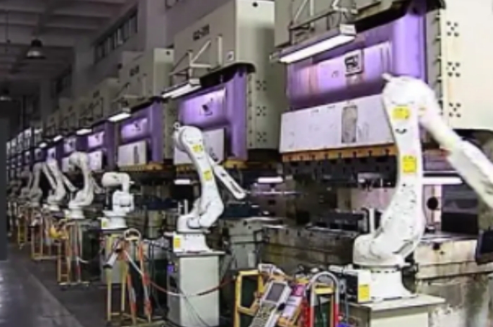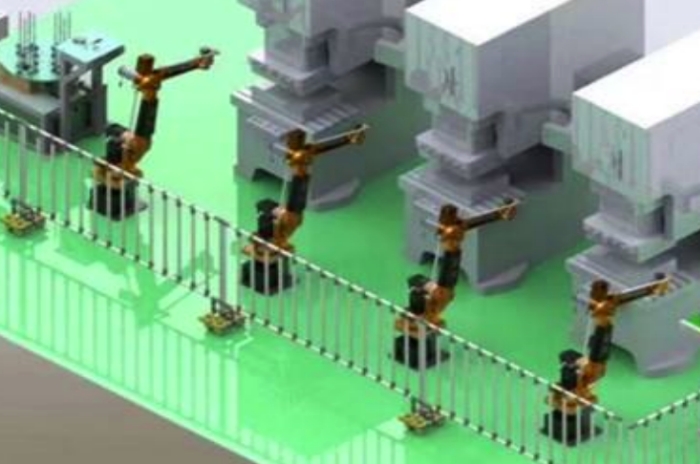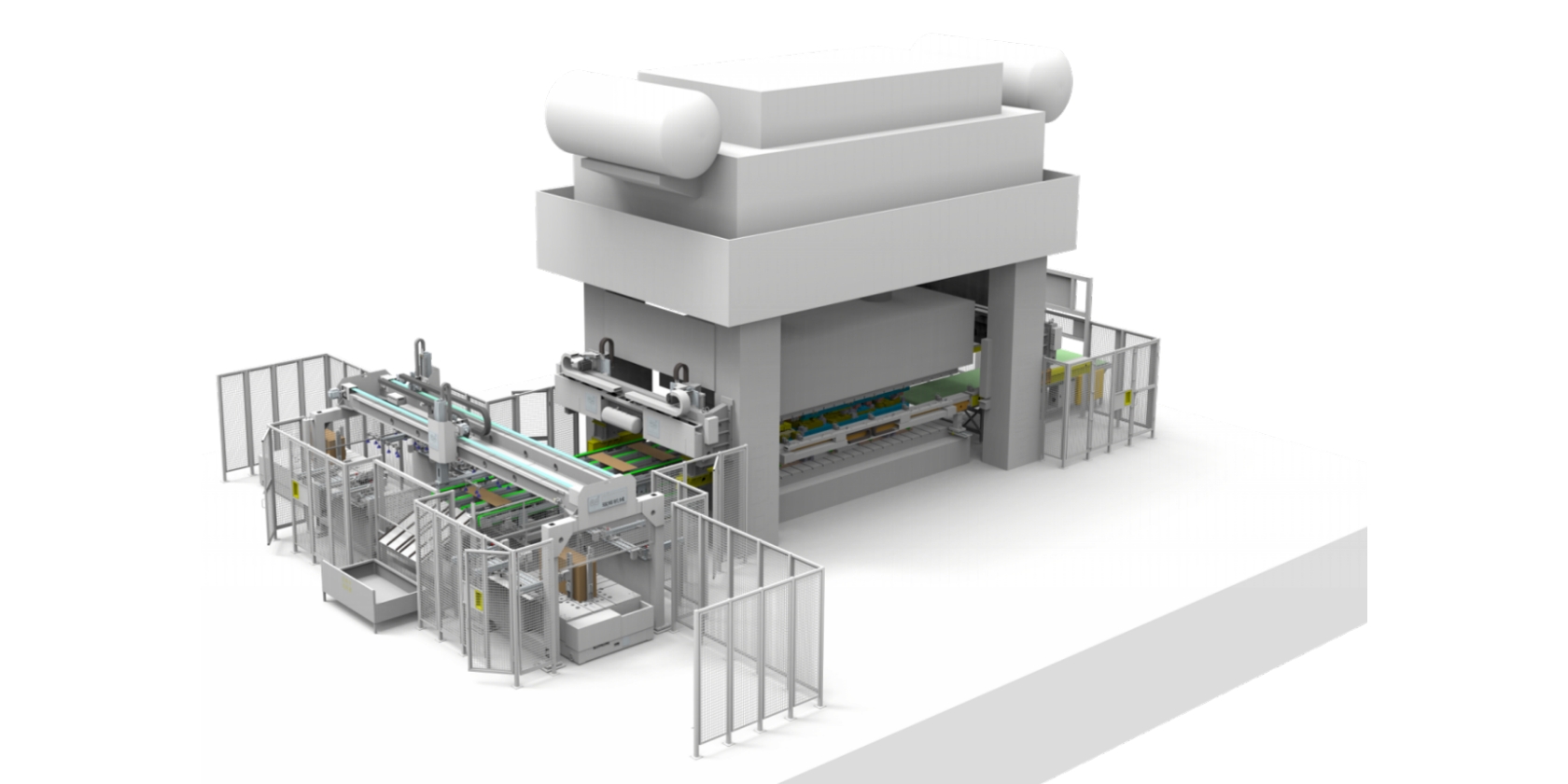 三次元多工位冲压线设备:三合一送料机、拆垛机、压机冲压、成品输送